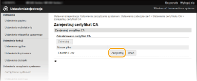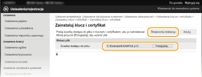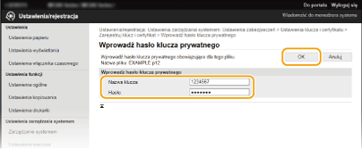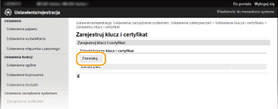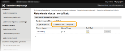[Ustawienia klucza i certyfikatu] lub [Ustawienia certyfikatu CA].