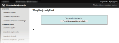 Sprawdź szczegóły certyfikatu, a następnie kliknij przycisk [Weryfikuj certyfikat].