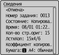 Отображает текущее состояние выбранного элемента. В качестве примера ниже приведен экран <Сост. задания копир.>.