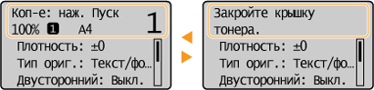Сообщения в верхней части экрана отображаются в тех случаях, когда истек срок службы картриджа с тонером или когда крышка оставлена открытой. Дисплей попеременно показывает обычный экран и сообщение.