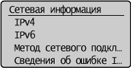 Отображает настройки сети, например IP-адрес аппарата, и состояние, например состояние беспроводного подключения по локальной сети.