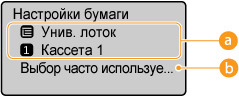 Можно настроить устройство таким образом, чтобы на экране выбора отображались только часто используемые форматы бумаги.