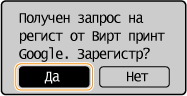 Можно также зарегистрировать аппарат с мобильного устройства или из Google Chrome*. В конце регистрации на дисплее устройства появится следующий экран подтверждения. Для завершения регистрации выберите <Да>.