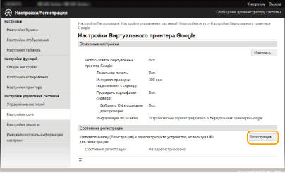 Регистрация аппарата в системе «Виртуальный принтер Google»
