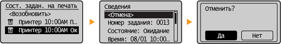 Отмена из удаленного ИППечать можно отменить со страницы [Состояние задания] на Удаленном ИП: Проверка состояния документов для печати