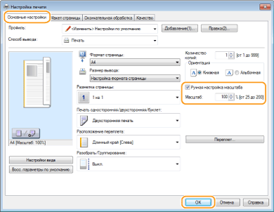 Выберите флажок [Ручная настройка масштаба]