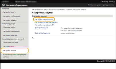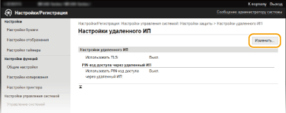 Установите флажок [Использовать PIN-код доступа через удаленный ИП] и задайте PIN.