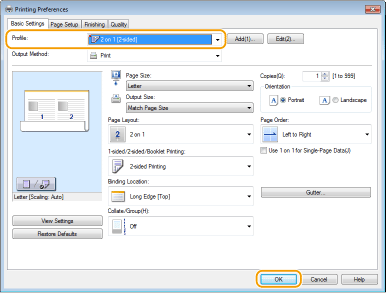 Вибір комбінацій параметрів на кшталт «односторонній друк на папері формату A4 альбомної орієнтації» щоразу під час друку може займати багато часу. Якщо зберегти часто повторювані комбінації параметрів друку у вигляді «профілів», параметри можна вибирати, просто використавши профіль зі списку. У цьому розділі описано, як створити профілі і як використовувати їх для друку.