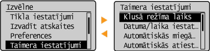 Lai mainītu to ekrānu, kas automātiski tiek parādīts, ja iekārta norādītu laika periodu atrodas dīkstāvē, skatiet sadaļu: