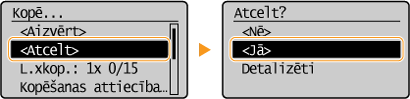Atcelšana kopēšanas laikā parādītajā ekrānā