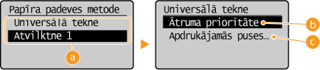 Papīrs), tā vietā papīra avotam tiek lietots iestatījums <Ātruma prioritāte>. Šādā gadījumā papīrs ir jāievieto tāpat, kā tad, ja ir izvēlēta opcija <Ātruma prioritāte> (