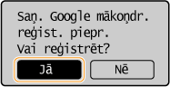 Ierīci var reģistrēt arī no mobilas ierīces vai Google Chrome*. Pirms reģistrācijas beigām ierīces displejā tiek parādīts tālāk norādītais apstiprinājuma ekrāns. Izvēlieties <Jā>, lai pabeigtu reģistrāciju.