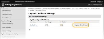 Noklikšķiniet uz [Register Default Key], kas atrodas pa labi no atslēgu pāra, ko vēlaties izmantot klienta autentifikācijai.