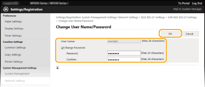 Iestatiet lietotājvārdu/paroli un noklikšķiniet uz [OK].