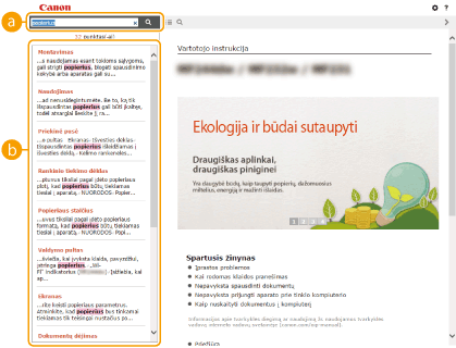 Spustelėkite, kad būtų rodoma, kaip peržiūrėti vadovą Vartotojo instrukcija, atlikti paiešką ir kita informacija.