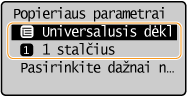 pasirinkite <Universalusis dėklas> arba <1 stalčius> ir paspauskite