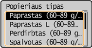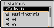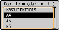 Varnele nepažymėti popieriaus formatai bus rodomi ekrane <Pop. form. (kt. form.)>.