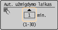nustatykite laiko tarpą iki aparato automatinio persijungimo į budėjimo režimą