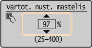 . Taip pat galite 1 % žingsniu nustatyti kopijavimo mastelį (nuo 25 iki 400 %).