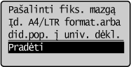 Prie aparato viduje esančių fiksavimo blokų gali prilipti nešvarumų, o dėl jų spaudiniuose gali atsirasti ruožų. Norėdami išvalyti fiksavimo bloką, atlikite toliau nurodytus veiksmus. Atkreipkite dėmesį, kad fiksavimo bloko negalėsite valyti, kol bus laukiančių spausdinimo dokumentų. Norint išvalyti fiksavimo bloką, prireiks didesnio nei A4 arba „Letter“ formato paprasto popieriaus lapo. Prieš atlikdami toliau aptašytus veiksmus, įdėkite popierių į rankinio tiekimo dėklą.