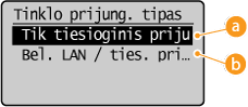 Laidinio LAN arba belaidžio LAN pasirinkimas Laikas iki ties. prijungimo nutraukimo |