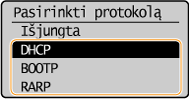 Pasirinkite <DHCP>, <BOOTP> arba <RARP> ir spauskite
