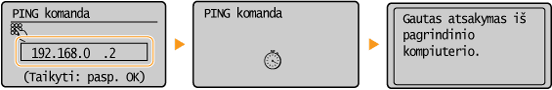 Tikrinimas, ar parametrai teisingiĮsitikinkite, kad jūsų kompiuteryje gali būti rodomas priemonės „Remote UI“ (Nuotolinio vartotojo sąsaja) ekranas (Priemonės „Remote UI“ (Nuotolinio vartotojo sąsaja) paleidimas). Jei kompiuterio nėra, ryšį galite patikrinti naudodami valdymo pultą (Tinklo ryšio bandymas).