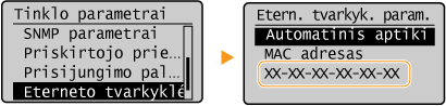 pasirinkite <Tinklo parametrai> ir paspauskite