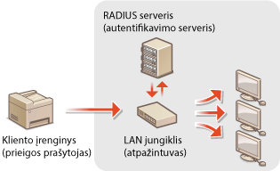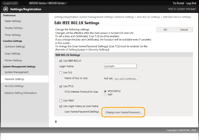 Valdymo pulto naudojimasTaip pat galite įgalinti arba išjungti IEEE 802.1X autentifikavimą <Meniu>. IEEE 802.1X parametrai
