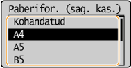 Kui sisestatud paberiformaati ei kuvata, kasutage seade <Muud suurused> valimiseks klahve