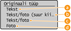 Koopia jaoks saate valida optimaalse kujutisekvaliteedi lähtuvalt dokumendi tüübist (nt tekstidokumendid, diagramme või jooniseid sisaldavad dokumendid või ajakirjafotod).