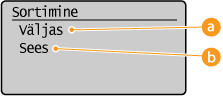 Kui teete mitmelehelisest dokumendist mitu koopiat, siis määrake koopiate sortimiseks järjestatud lehekülgedena seade <Sortimine> väärtuseks <Sees>. See funktsioon on kasulik koosolekute või esitluste jaotusmaterjalide ettevalmistamisel.