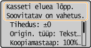 <Kasseti eluea lõpp. Soovitatav on vahetus.>