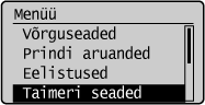Kõik taimerisätted on esitatud lühikese kirjeldusega. Vaikeseaded on tähistatud ristiga (