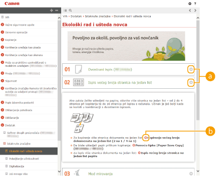 Kliknite da biste prikazali informacije o tome kako pregledati priručnik Korisnički vodič, kako pretraživati itd.