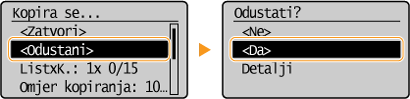 na upravljačkoj ploči. Nakon provjere statusa kopiranje možete i otkazati.