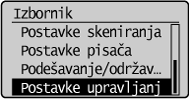 Postavke timera Uobičajene postavke*3 Postavke kopiranja Postavke skeniranja Postavke pisača Podešavanje/održavanje Postavke upravljanja sustavom Inicijaliziraj sve |