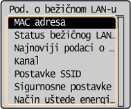 . Pritisnite <Mrežne informacije> <Metoda spajanja na mrežu> i odaberite postavku koju želite pogledati. |
