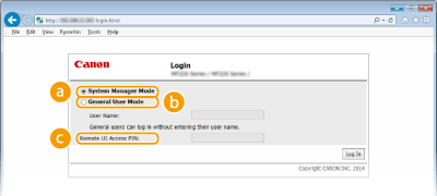 Možete izvoditi sve operacije i definirati postavke sučelja Remote UI (Korisničko sučelje za daljinski pristup). Unesite odgovarajući PIN u odjeljak [System Manager PIN] (