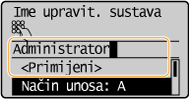 Unesite najviše 32 znaka za ime upravitelja sustava, odaberite <Primijeni>, a zatim pritisnite