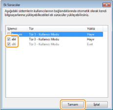 ![]() Yazdırma sunucusunun işletim sistemine bağlı olarak aşağıda belirtilenlerden ilave sürücüleri seçin.