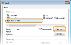 Bu makinenin yazıcı sürücüsünü seçin ve [Tercihler] veya [Özellikler] öğesini tıklatın.