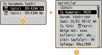 tuşlarını kullanarak <İş Durumunu Yazdır> seçeneğini belirleyin ve