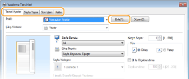 Her bir ekranda yazdırma ayarlarını gerektiği gibi belirtmek için, [Temel Ayarlar], [Sayfa Yapısı], [Son İşlem] veya [Kalite] sekmelerini tıklatın.