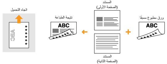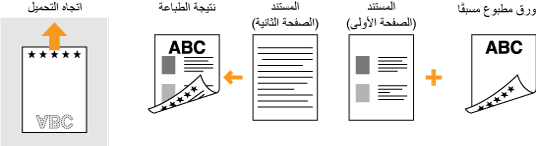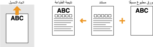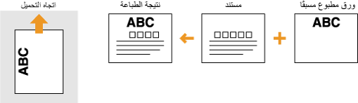 يصف هذا القسم بشكل أساسي كيفية تحميل الورق المطبوع مسبقًا مع توضيح التوجيه والاتجاه الصحيحين. وللحصول على وصف للإجراء العام الخاص بتحميل الورق في درج الورق أو في فتحة التغذية اليدوية، راجع تحميل الورق في درج الورق أو تحميل الورق في فتحة التغذية اليدوية.