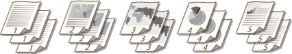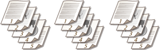 عند إعداد نسخ متعددة من مستندات صفحة متعددة، اضبط <ترتيب> على <تشغيل> لترتيب النسخ بترتيب الصفحات التسلسلي. وهذه الوظيفة مفيدة عند إعداد المطبوعات للاجتماعات أو العروض التقديمية.