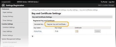 [Key and Certificate Settings] أو [CA Certificate Settings].