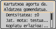 Makinan mezu bat agertuko da toner-kartutxoa ia hutsik dagoenean. Kontuan izan inprimatze-kalitatea okertuko dela ezer egin gabe inprimatzen jarraituz gero. Toner-kartutxoan gelditzen den kantitatea pantailan begira dezakezu.