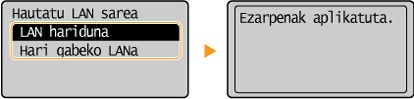 Hautatu <LAN hariduna> edo <Hari gabeko LANa> eta sakatu