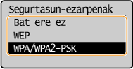 Hautatu <WPA/WPA2-PSK> eta sakatu